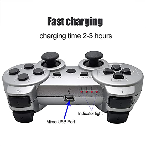 Dimrda PS3 Controller Wireless Bluetooth PS 3 RemDimrda PS3 Controller Wireless PS 3 Remote Controller Bluetooth for Sony Playstation 3 Controller Game Joystick with Charging Cables Blue + Silver