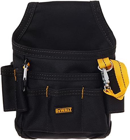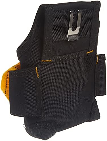 Ballistic poly fabric includes reinforced edges for extra wear. The pouch has a large main pocket and smaller front pocket for convenient access to parts or tools. Web loops and sleeve pockets provide multiple storage options, handy flashlight or large tool sleeve, Electrical tape strap plus carabineer for keys. Rear clip or attach to belt up to 2-3/4" wide.