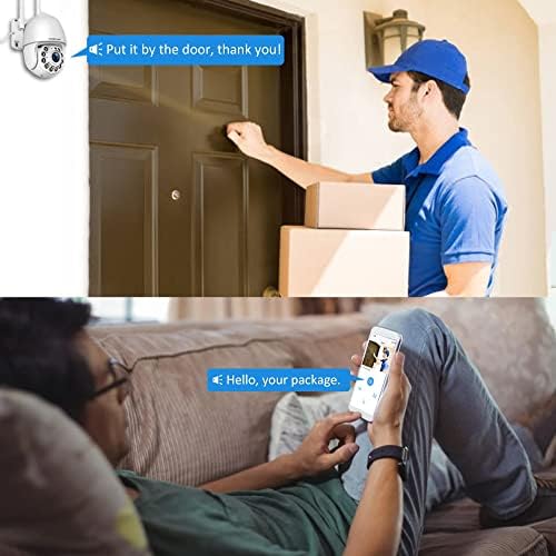 【Spotlight & Alarm Siren】The spotlight of this outdoor security camera can be set to turn on when the moving objects detected in the darkness, you can also set sound alarm to make loud siren when the moving object is detected, the built-in advanced microphone & speaker allows you scare away uninvited guests,send commands to pets, say hello to welcome guests.