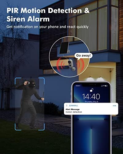 Solar Security Camera 2K FHD, ZUMIMALL Wireless Cameras for Home Security, Outdoor Surveillance Camera Battery Powered Outside Camera, Night Vision, IP66 Waterproof, 2.4GHz WiFi(Not Support 5G)