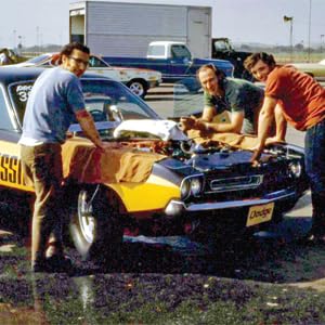 Between Dave Koffel chasing hard-to-find parts and the engine-building skill of Ted and Lenny, the team had a number of Chrysler LA-series engines to experiment with that year. Note the very tight distributor position in relation to the intake plenum. (Photo Courtesy Oldfield Family)