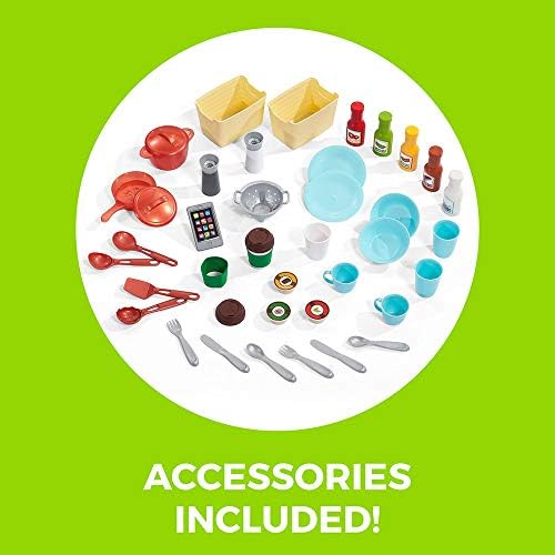 Little chefs will love whipping up tons of fun with the Step2 Fun with Friends Kitchen Playset. With a stylish, open concept design that looks great in any playroom and toy kitchen accessories included, children of all ages can find endless entertainment. It encourages pretend play for girls and boys with realistic kitchen features like a molded-in sink with faucet, countertop, refrigerator, pod coffee maker and oven with working doors. The electronic stove burner lights up and makes cooking noises (requires 2 “AA” batteries, not included), and the knobs click as little hands turn them. Plus, when playtime fun is done, multiple accessory hooks, shelves and bins help store all the accessories to keep this playset for toddlers looking neat and tidy.