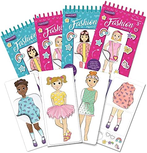 ENDLESS ON-THE-GO FUN: This set includes 4 booklets, each featuring 12 dolls and 96 outfits and accessories to color, mix, and match. The PaperCraft Fashion Parade keeps kids busy for hours; Pieces are contained in a travel-ready, spiral-bound book for easy transportation—perfect for coloring in the car or on the plane or train!