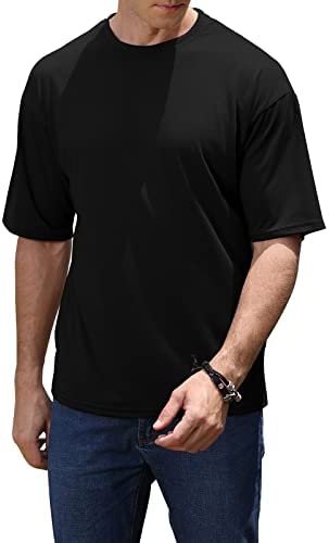 Item Type: Men’s t shirts Material Composition: 65% Polyester, 35% Cotton Color: Black,White,Khaki,Green,Brown Neckline: Crewneck Pattern Type: Solid Size Fit: Regular fit Occasions: Daily wear, office, work, date, party, traveling,outdoor Washing instruction: Machine wash or hand wash