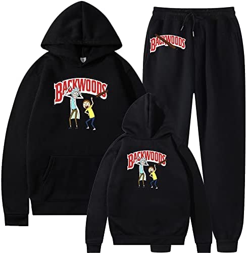 UFEQACZ Black 3D Printed Hoodie Sweatpants Set Fashion Pullover Hoodie Sweatshirt Gift Tracksuit for Men Women