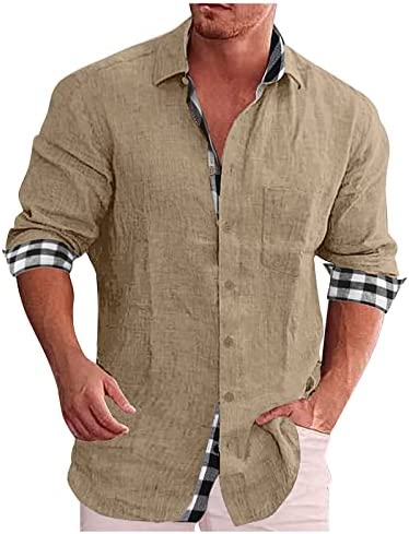 HomeFashionMens Shirts Long Sleeve,Mens Fashion Casual Pocket Solid Color Button Long Sleeve...