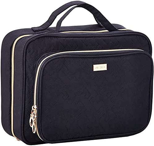 MAKEUP BRUSHES & LAEGE EYESHADOW PALETTE SECTION-The large front pocket is special section for storing your 2 sets of makeup brushes and large size eyeshadow palette. The PVC cover with velcro protects your brushes from getting dirty