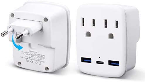 5 in 1 Europe Plug Adapter: This power converter US to Europe combines 2 AC outlets and 2 USB-A & 1 USB-C charging ports, allowed to fast charging 5 devices at once. Ideal for cell phone, tablet, power bank, laptop, earphone, etc. Provide best charging solution for you europe trip.