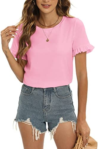 Stylish Design: ruffle short sleeve tops, trendy cute summer shirts, fashion work blouses, round neck t shirts, loose fit casual t-shirts, simple basic style, easy to dress up and down.