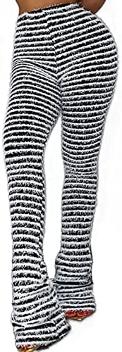 ✿ Feature: Elastic waist, high waisted, color block striped, bodycon, bell bottoms, trendy flare pants. Fuzzy pants, look street style, stacked long trousers.