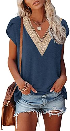 【Features】:Womens summer tops with petal sleeve/cute tulip sleeves,Solid Color,Lace holes designed v neck, Loose Fit, Tunic Tops,Boho Tops oversized, Basic short sleeve t shirt, Casual blouse, Lace cute tops for a stylish and sexy look, Make you more charming.