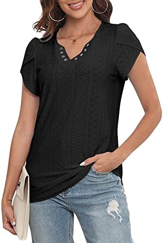 🌹 Feature:Womens Summer Chic Short Sleeve Tops 2023,women cap sleeve tops,Crochet Eyelet Tops,Petal Sleeve Casual Tshirts, Crochet, Eyelet,Hollow Out