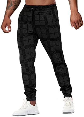 Men’s Fashion Joggers Sweatpants Drawstring Workout Gym Tapered Pants Plaid Sport Pants