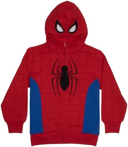 Let your little one look like his favorite superhero this Halloween or any other day with this Spider-Man Costume Fashion Zip Up Hoodie. This zip-up hoodie has a sewn spider applique across the front, so it looks as if he is ready to change into his Spidey costume and save the day! Made of high quality fleece fabric and designed for comfort, this hoodie will keep him warm and let him move freely so he can really play like his hero. Available in sizes 5/6, 7/8, 10/12, and 14/16, this hoodie makes an excellent gift for kids and toddlers.