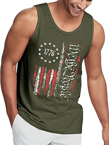 4th of July Shirts Mens Patriotic Tank Top 1776 Sleeveless Graphic Gym Workout American Flag Shirt