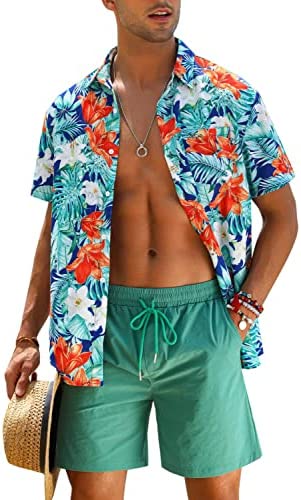 MENS FASHION: Mens 2 Piece Hawaiian Shirt and Quick dry Shorts Set, Flower printing shirt , Loose fit, button-down short sleeve shirt , spread collar, Shorts with slanted side pockets and one back pocket, which is convenient for you to store your small things, comfortable elastic waistband and drawstring. perfect choice for men.