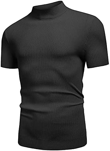 【High Stretchy Feature】The classic mens turtleneck t shirts provides a casual everyday look,high stretch and breathable fabric allows maximum flexibility while showing off your flattering figure.Through this simple men’s slim fit short sleeve sweater,you can wear a man’s individuality,fashion and youthful feeling