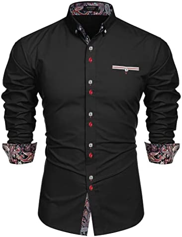 Coofandy brings a touch of elegance to this casual button down shirts by adding classic paisley on inner collar and cuffs, using natural fibre, soft colors and simple structures, each piece exudes luxury while remaining completely practical.