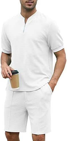 FZNHQL Men’s Casual Sweat Suit Set Tracksuit 2 Piece Henley Shirts and Long Pants