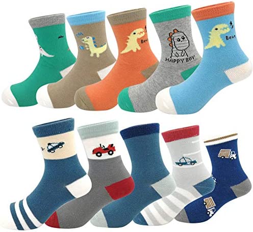 10 Pairs Cartoon Unisex Little Girl Boy Toddler Crew Cotton Socks