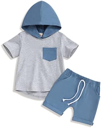 Baby Boy Clothes Short Sleeve Color Block Hoodie Tops Solid Shorts 2Pcs Toddler Boy Clothes 6Month-5T Summer Outfit