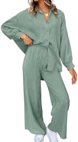 Design:womens fall fashion 2023,two piece long sleeve blouse pants set,drop shoulder design.This fall comfy 2 piece loungewear outfits not only brings you a comfortable experience, but also shows your unique charm.