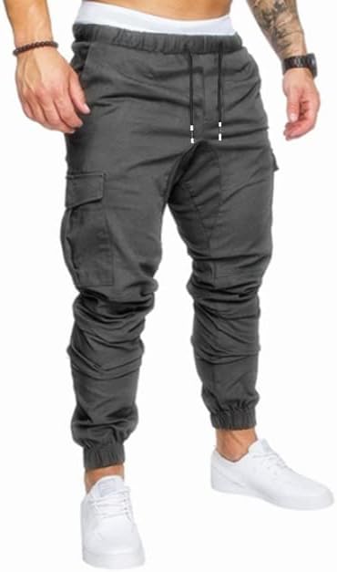 Feature: Men’s fashion slim fit tapered cargo pants , gym sweatpants, lightweight jogger, breathable, comfortable, long pants, solid color. Comfortable elastic band and adjustable drawstring to fix it on your waist, will not fall off during training and activities. Improve product adaptability.