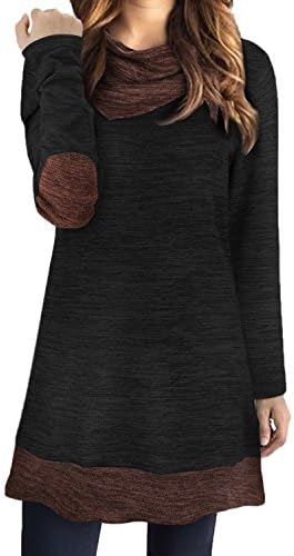 Women’s Cowl Neck Sweater Tops Long Sleeve Elbow Patchs Patchwork Casual Tunic Shirts