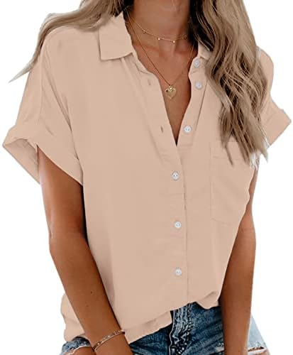 Beautife Womens Short Sleeve Shirts V Neck Collared Button Down Shirt Tops with Pockets