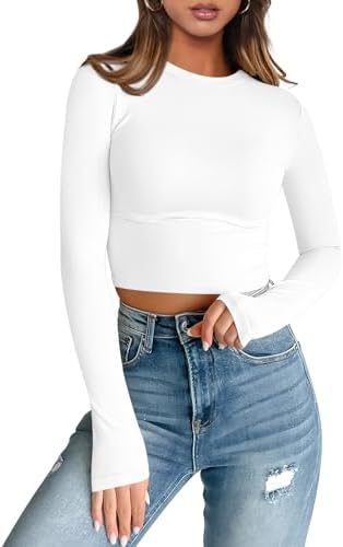 HomeFashionTrendy Queen Womens Long Sleeve Crop Tops Basic Slim Fitted Shirts Casual...