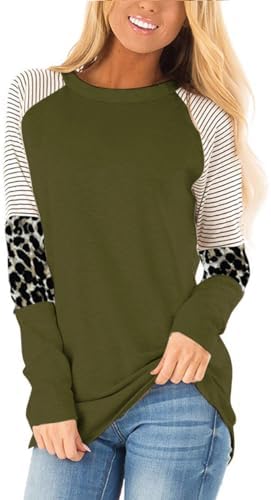 HARHAY 2022 Women’s Leopard Print Color Block Tunic Round Neck Long Sleeve Shirts Striped Causal Blouses Tops