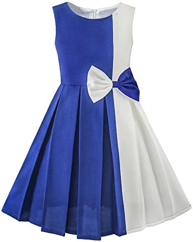 HomeFashionSunny Fashion Girls Dress Color Block Contrast Bow Tie Everyday Party Size...