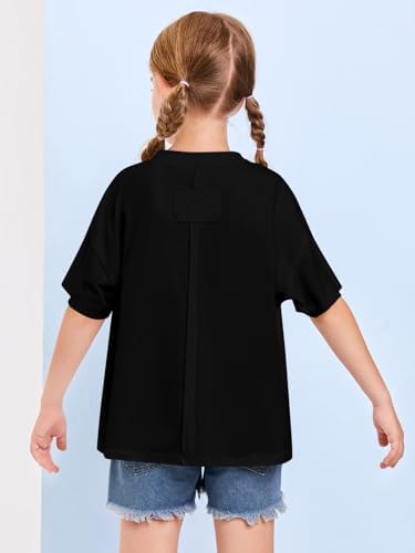 Girls Fashion Raw Hem Oversized T Shirts Summer Short Sleeve Tops Tees Shirt 5-14 Years