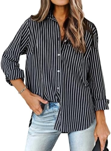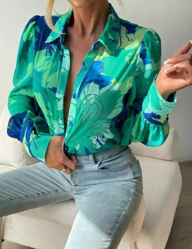 Zeagoo Womens Shirts Button Down Printed Lantern Long Sleeve Blouse Fashion Casual Tops 2024