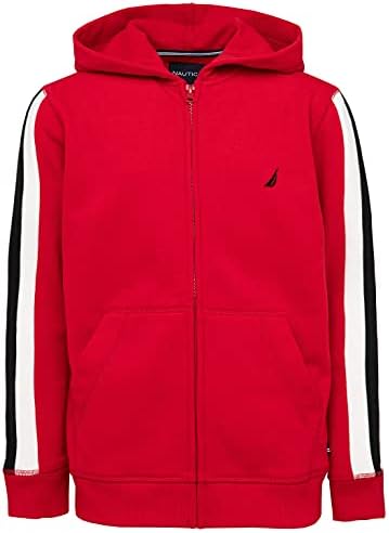 Nautica Boys’ Zip Up Hoodie Sweatshirt, Signature Logo Design, Kangaroo Pockets, Made with Lightweight Fleece