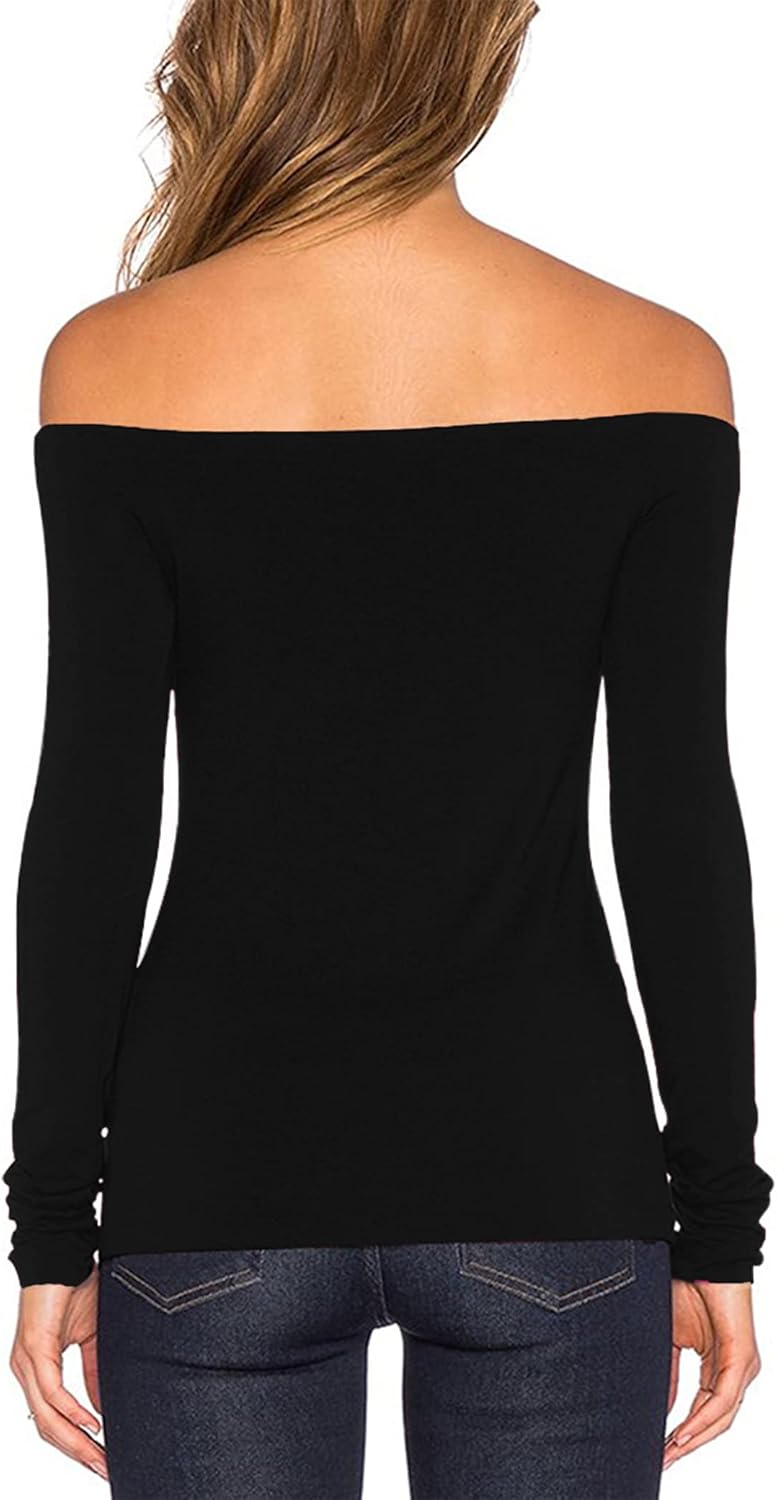 Sarin Mathews Women’s Sexy Off The Shoulder Tops Long Sleeve Slim Fit Stretchy Shirts Blouses Top