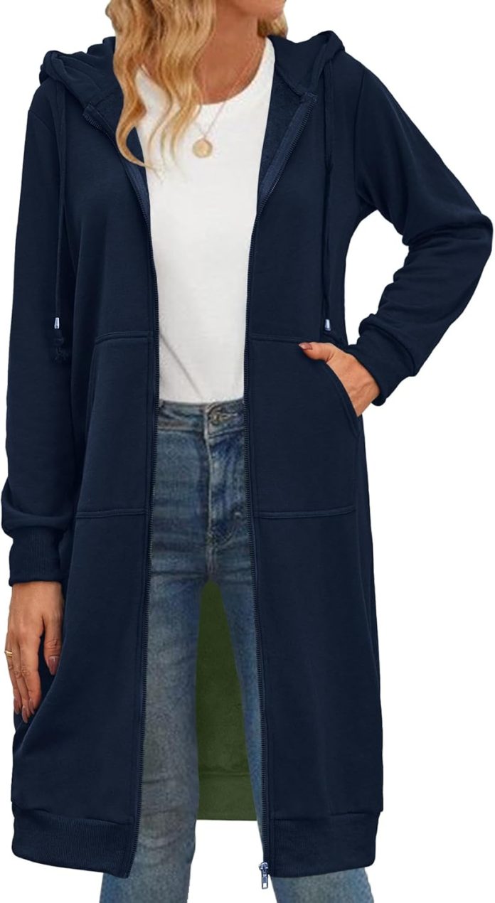Women’s Comfy Zip up Hoodies Tunic Sweatshirt Long Hoodie Cardigan Jacket
