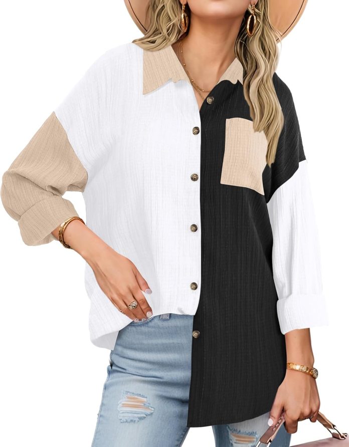 Classic Solid, Color Block, Lightweight, Breathable Button Up Blouses for Summer