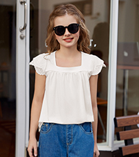 Girl’s Summer Tops Short Puff Sleeve Shirts Fashion Top