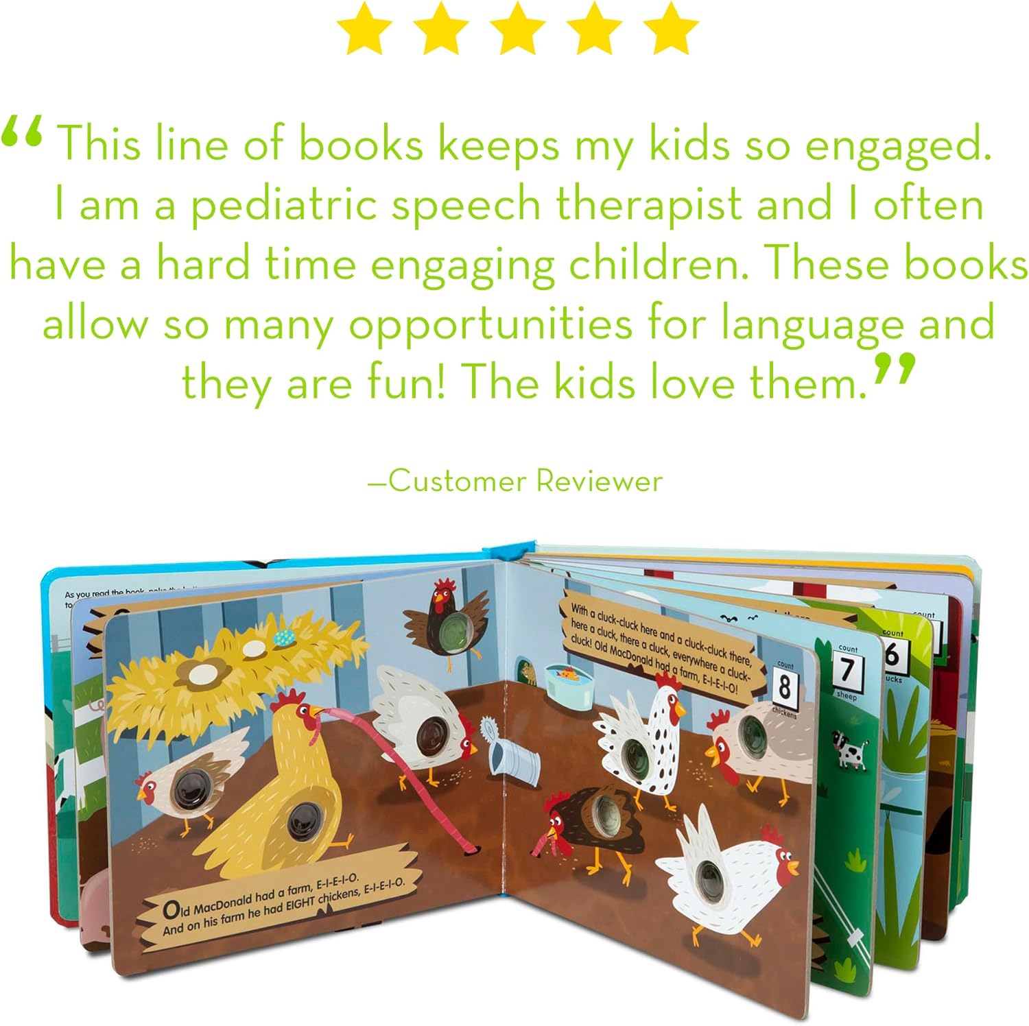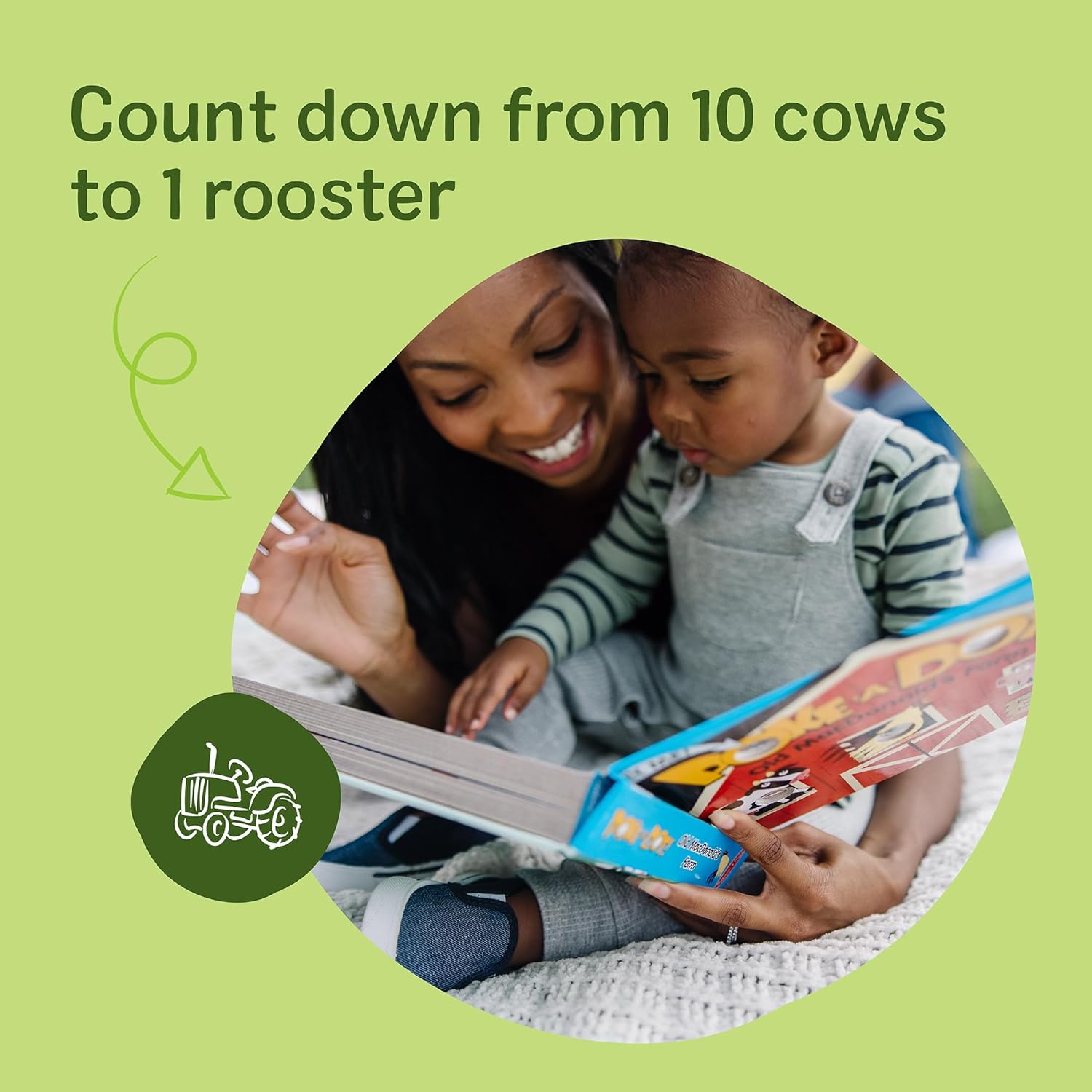 Sing, Count, and Pop on the Farm – Poke the dots to count down from 10 cows to 1 rooster while singing, reading along to “Old MacDonald’s Farm,” building number recognition, rhythm, and fine motor skills